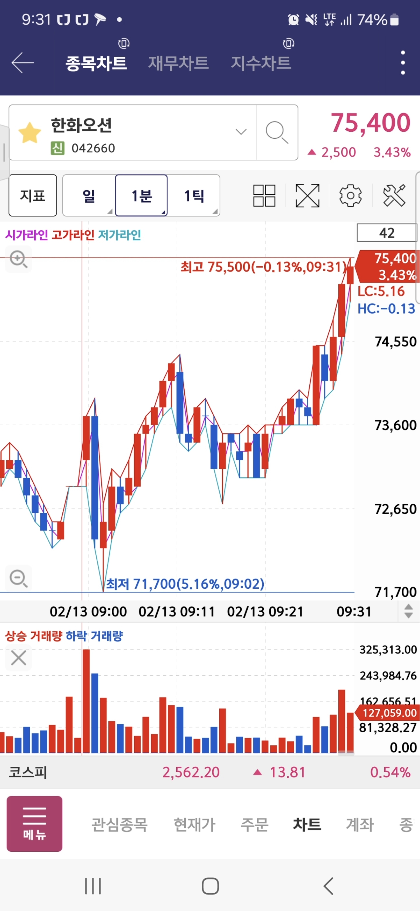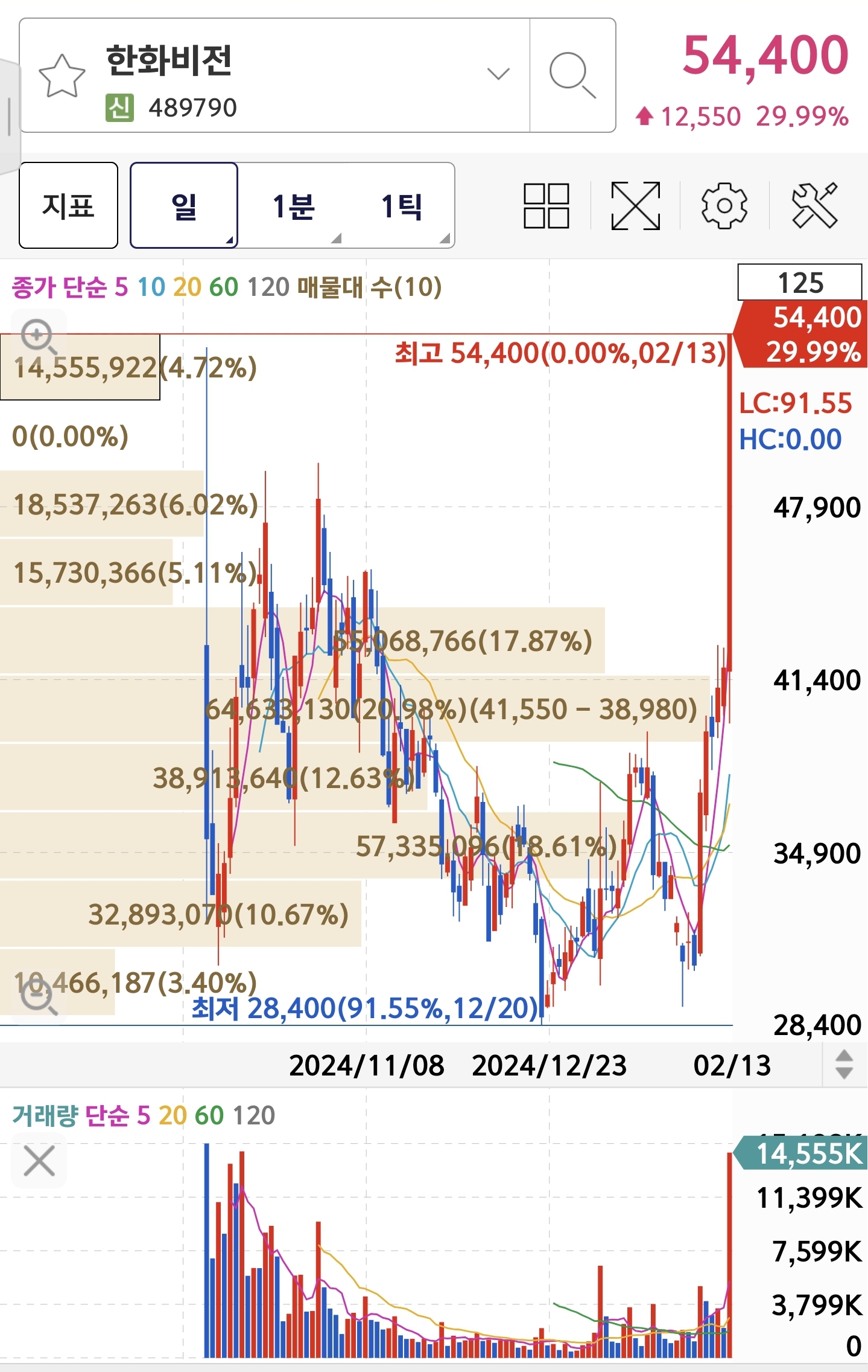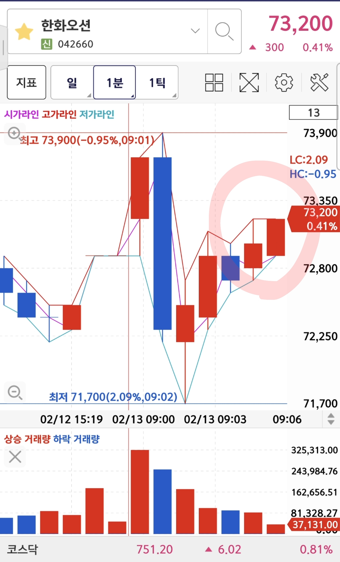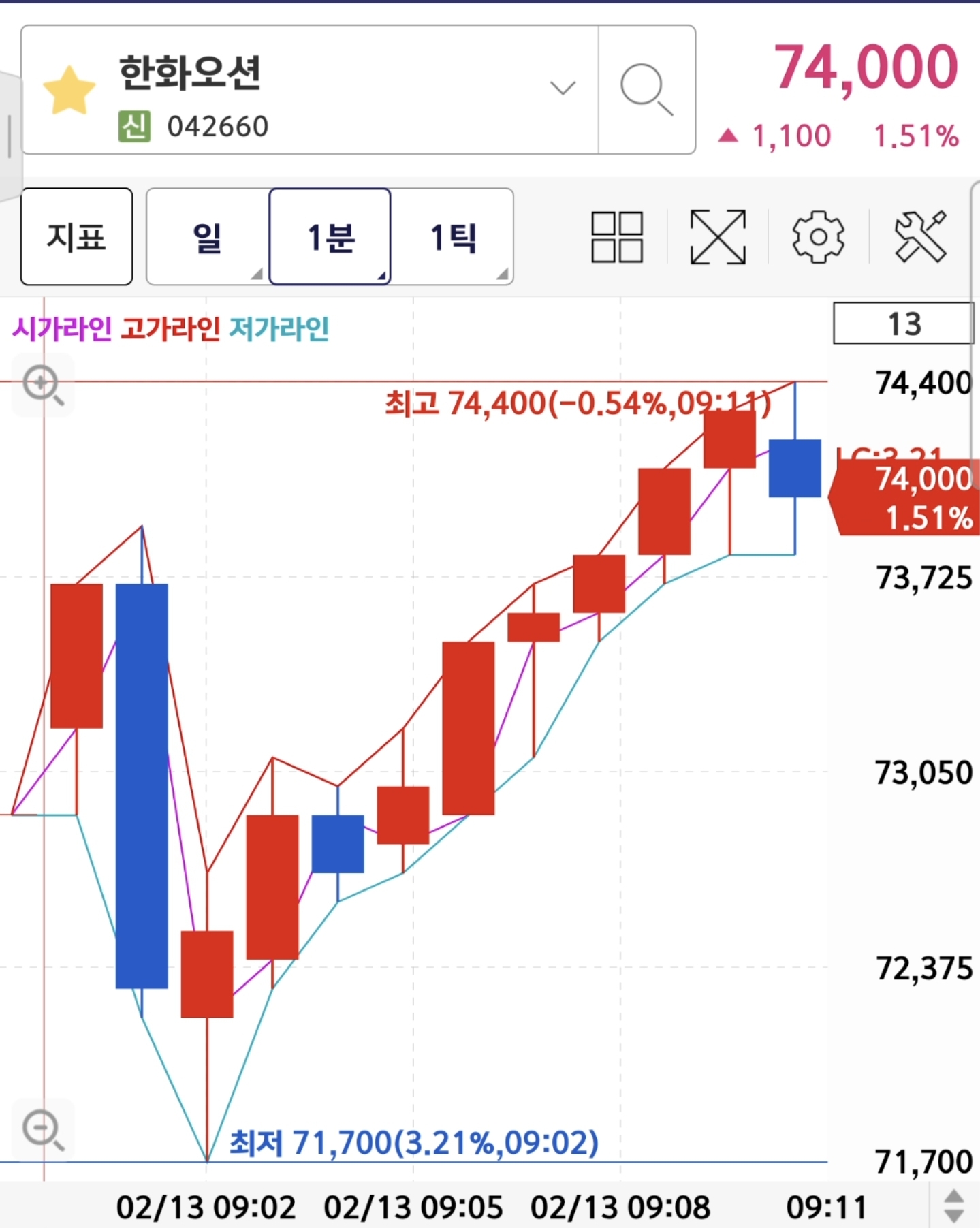 한화오션 분봉상 전고돌파 하길래