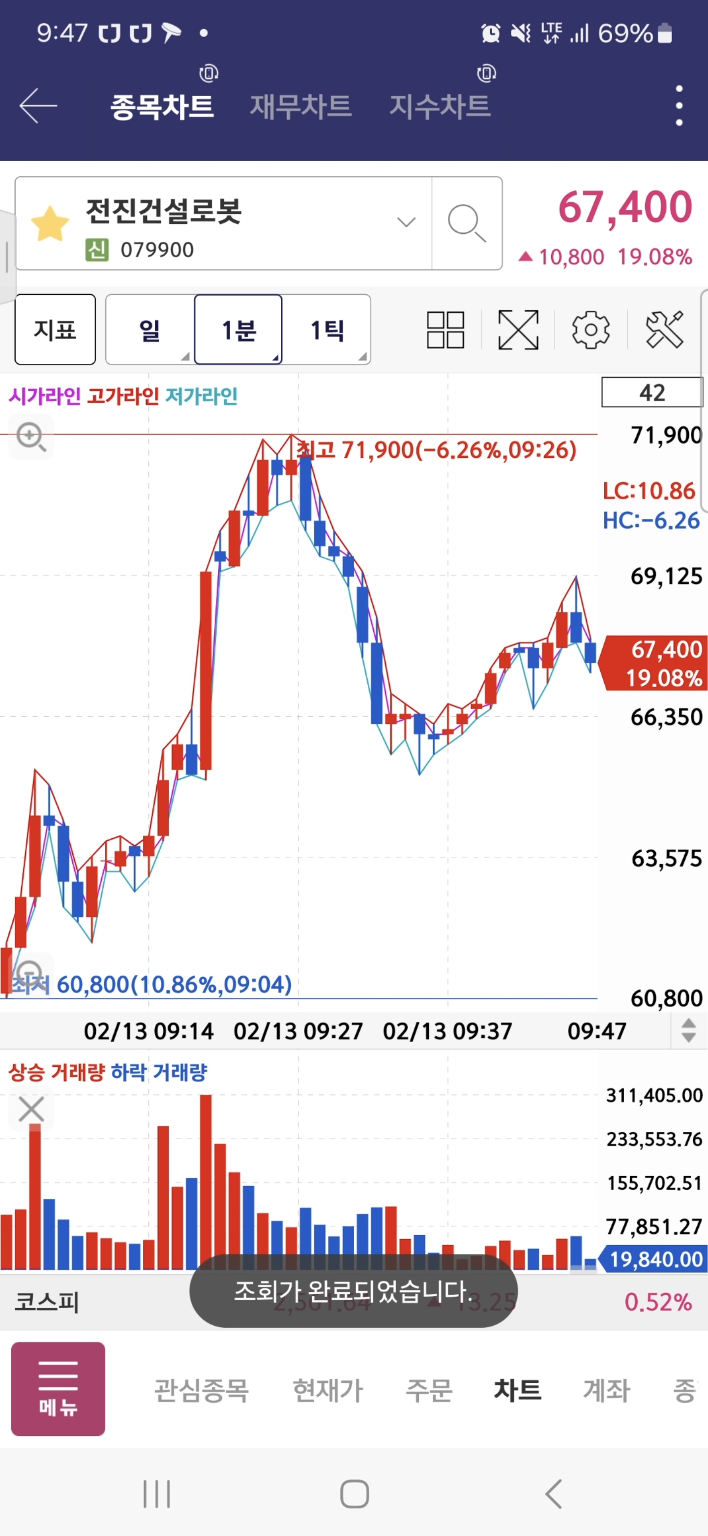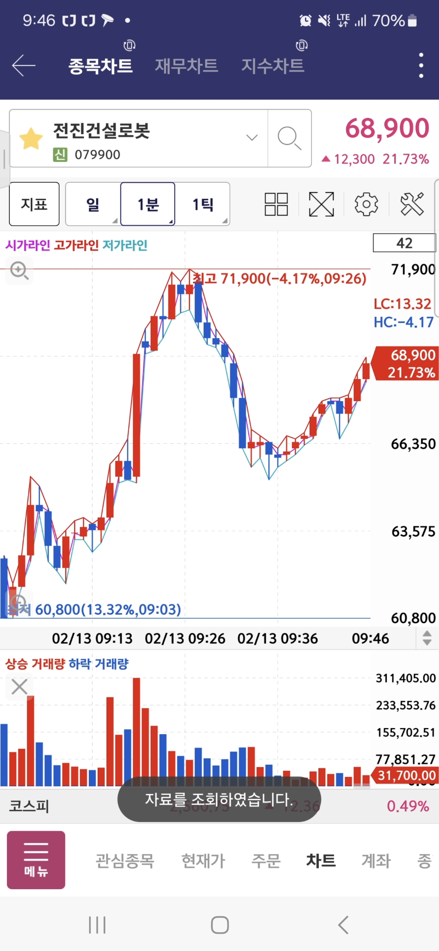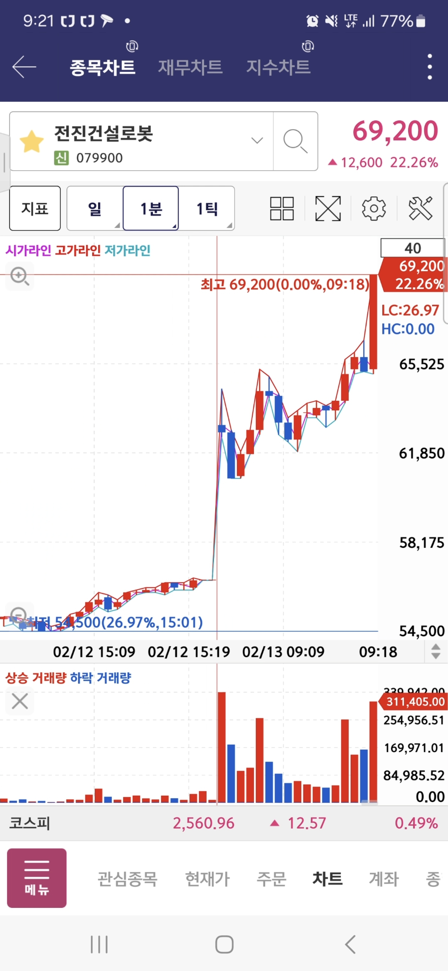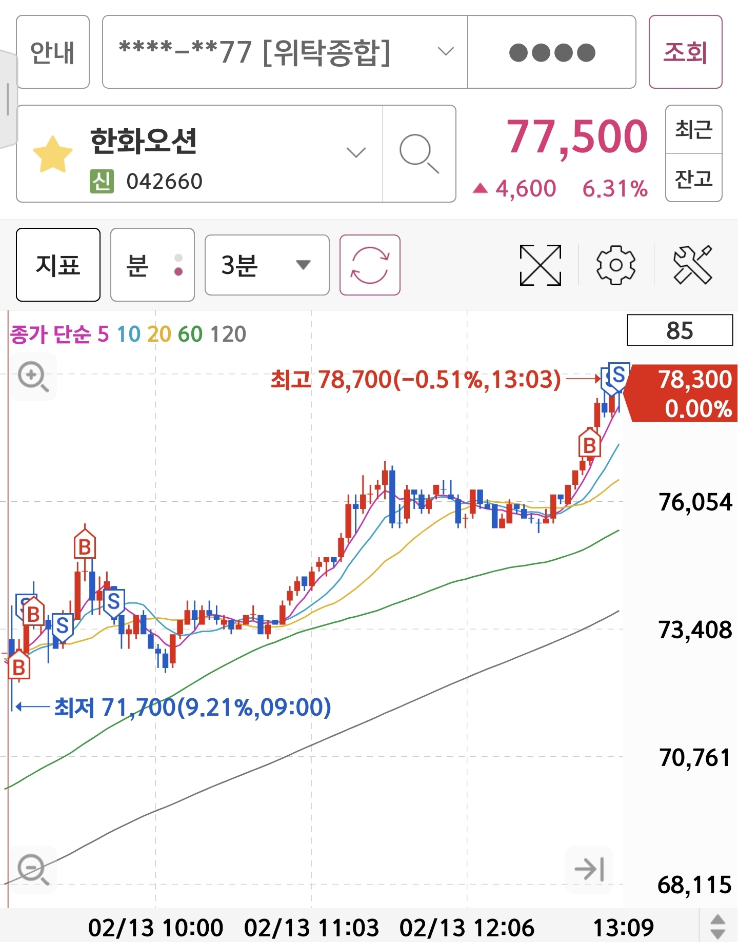 한화오션 분봉상 전고돌파 하길래