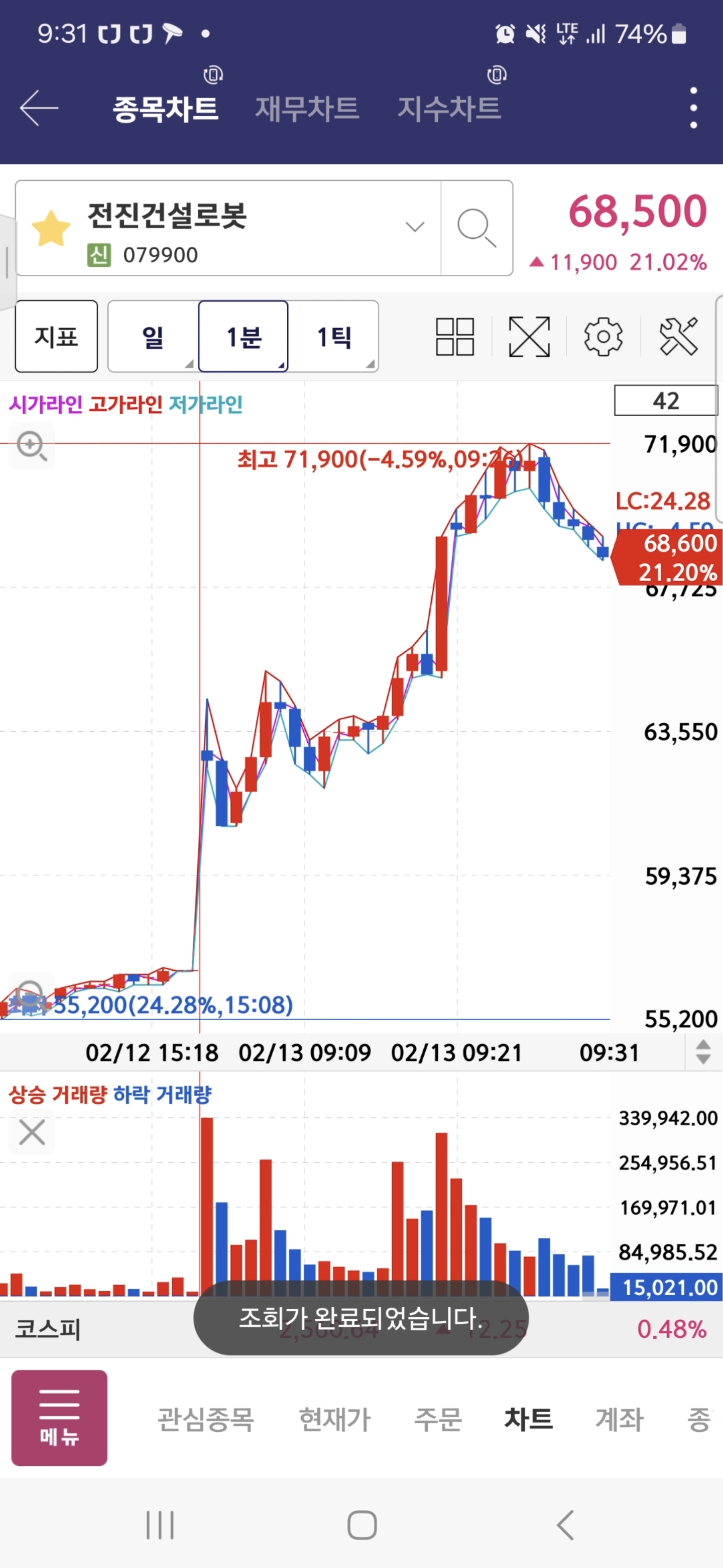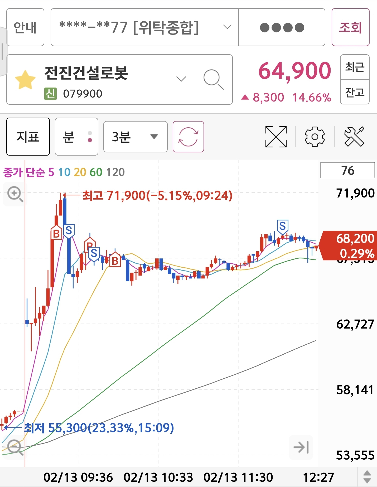 분봉상 전고점 돌파자리에 매수