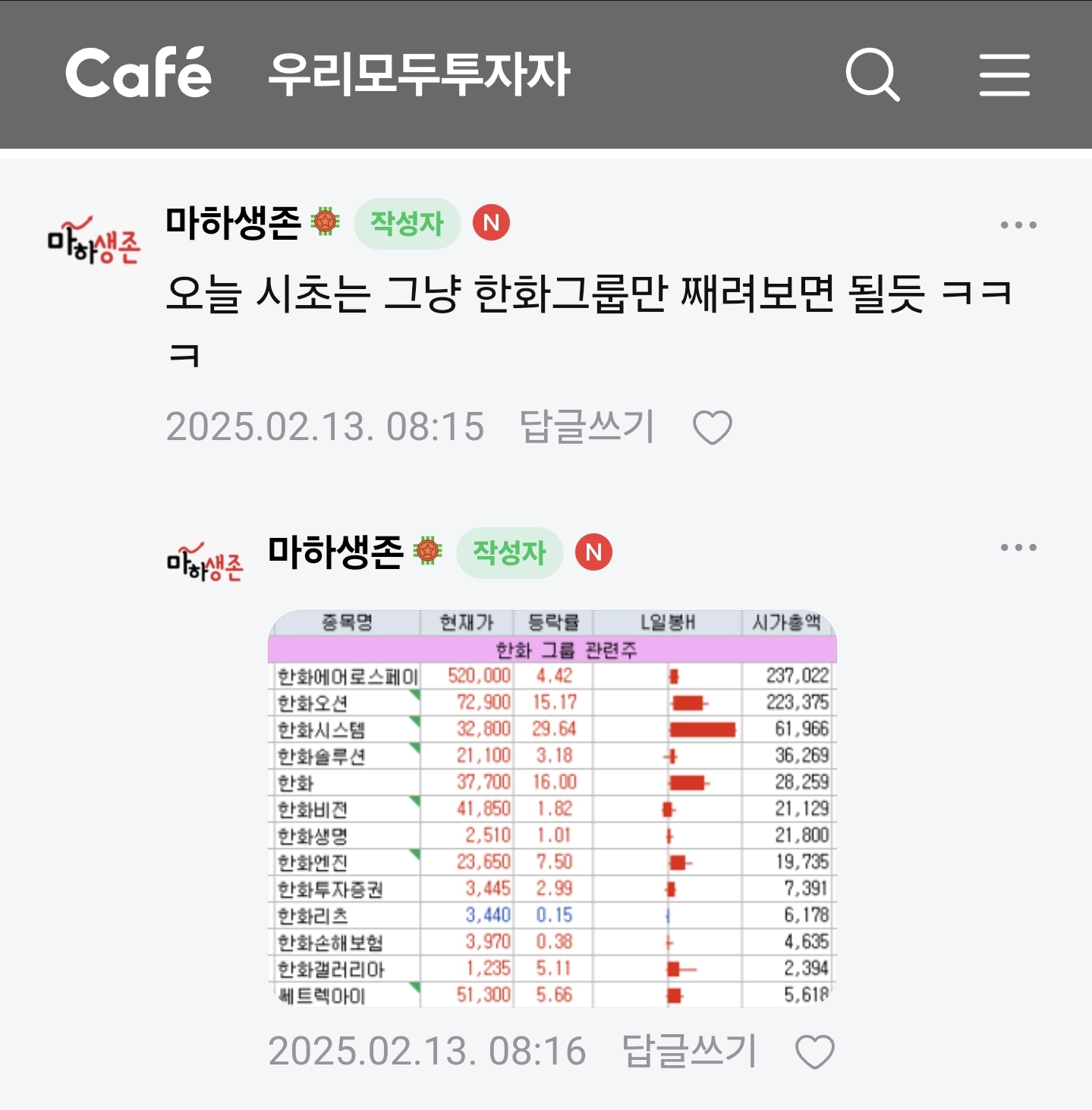 한화그룹만 째려보면 된다고 생각 했습니다.