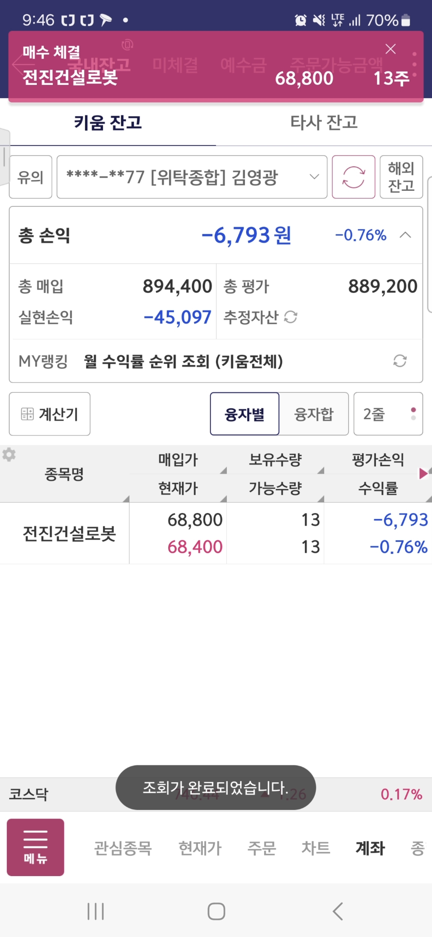 바로 다시 재매수 종베 완료